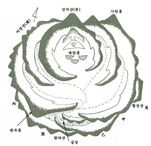 물론 산맥의 대간(大幹)에 잔가지가 짧게 뻗어 나와 그곳에 대길지(大吉地)가 생겨난 경우도 적지 않지만 통상 산줄기 끝가지에 과일이 주렁주렁 매달리듯 많은 명당이 맺혀진 사례가 흔하게 발견된다.